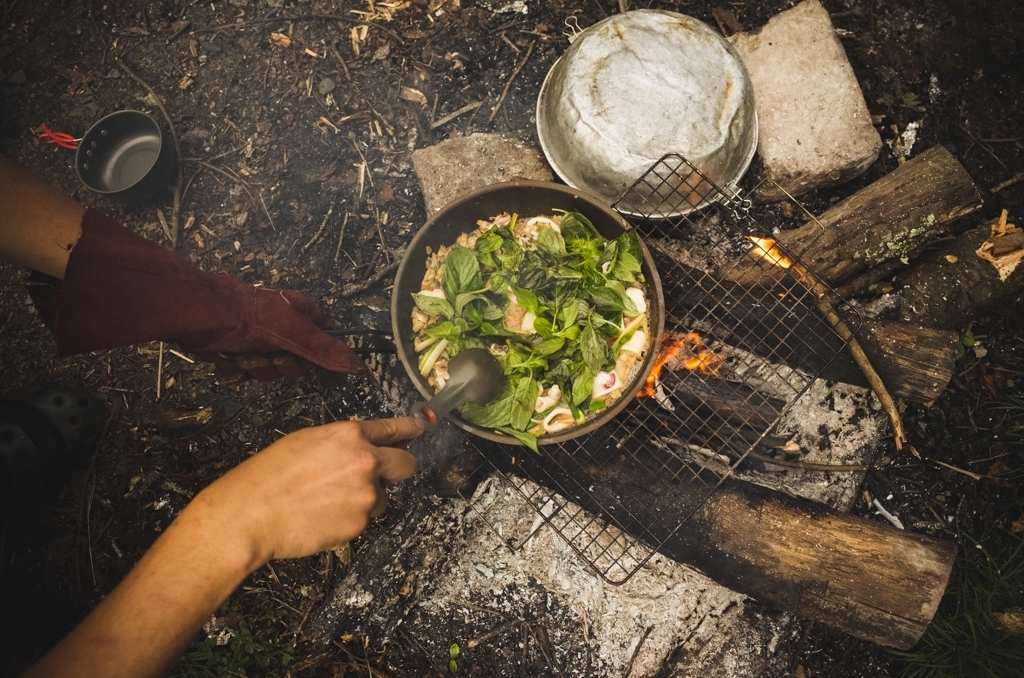 這堂課由資深高山嚮導普魯圖跟熟知自然生活的師彤講師帶領,到稱作『台灣亞馬遜森林』的哈盆越嶺古道走走,穿越森林、生火野營,野溪玩水。晚上協力完成一桌野菜料理,在森林的夜幕下起營火、吃飯、聊天,度過一個放鬆的夜晚。