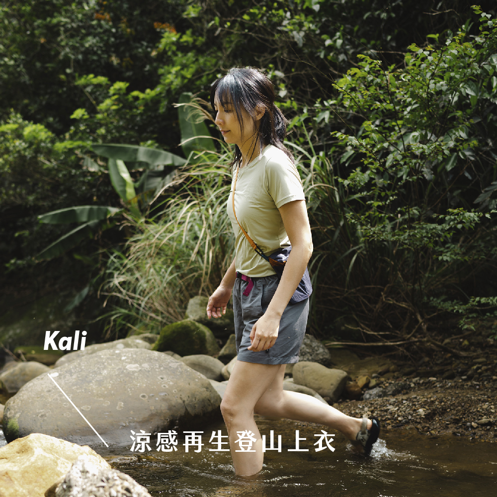 Kali:回收寶特瓶聚酯纖維,較運動機能手感。穿起來多了涼感效果。