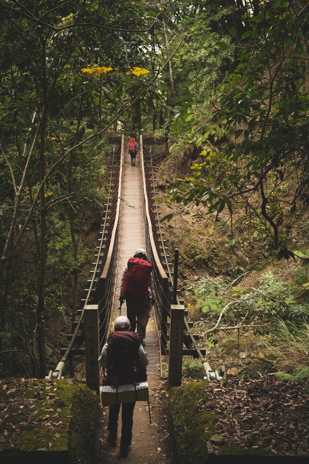 行至霞喀羅吊橋,木製的吊橋,隱密於綠林間,是低調的美感。