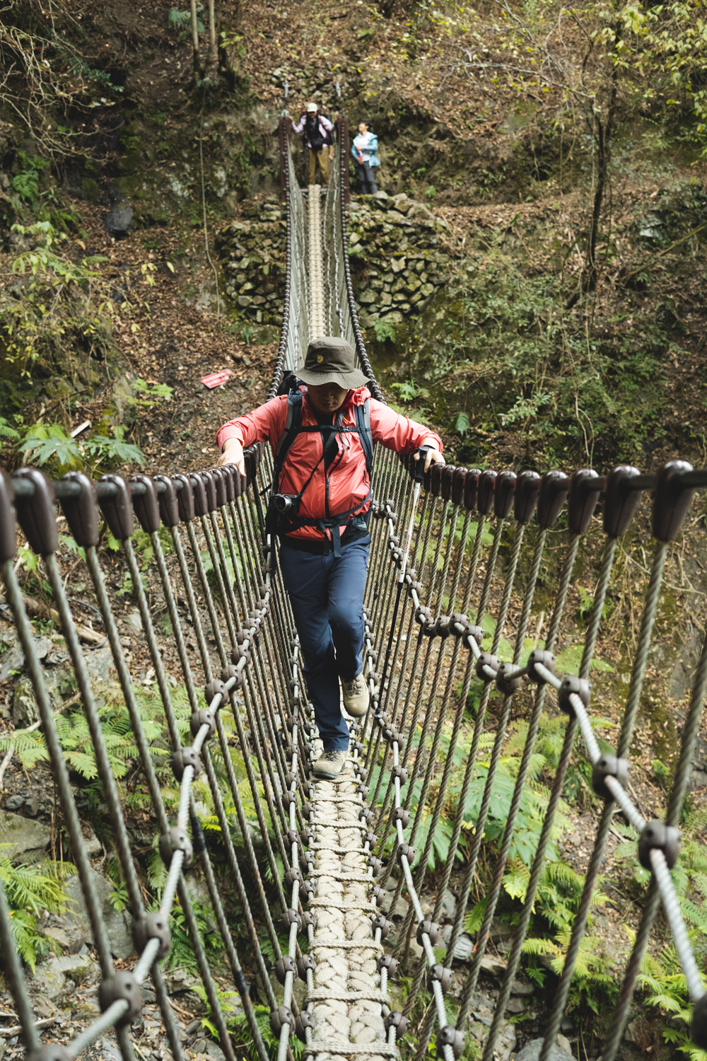 須限制人數通行的綁繩吊橋,若背包旁側袋有水瓶,建議先收入背包。以免在吊橋中段狹窄,水瓶掉落山谷。
