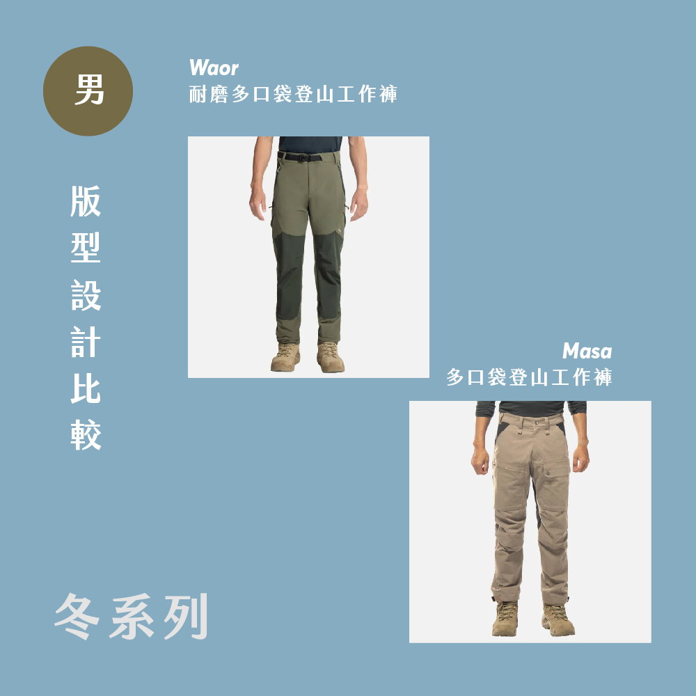 適中:Bonaz 健行褲、Mikas 耐磨褲、Waor工作褲