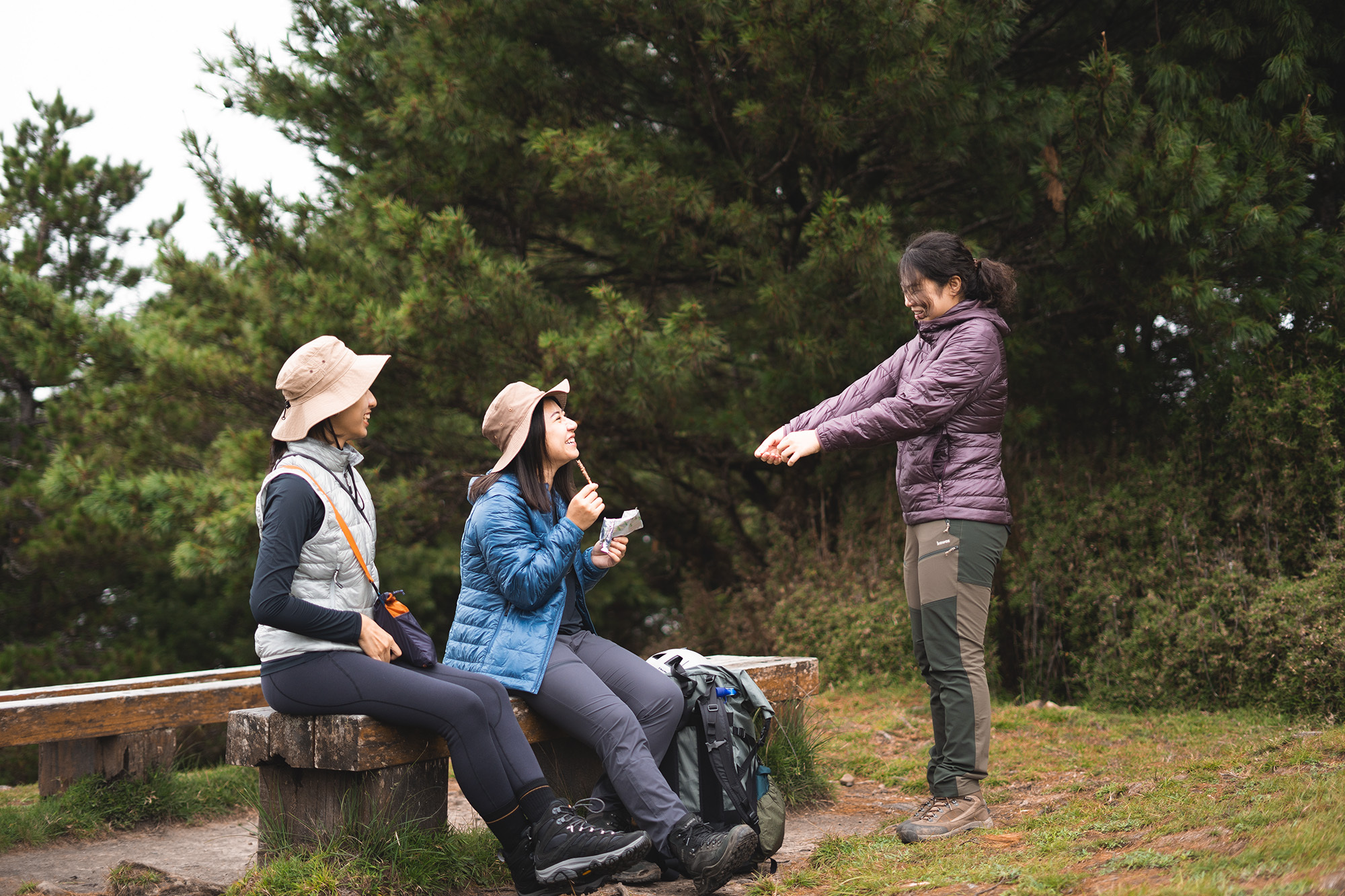 行進間我們會建議使用刷毛等化學纖維保暖材質,可以兼具行進間的排汗跟保暖。而靜態營地或是待在山屋休息時則推薦選羽絨,又輕量更保溫。