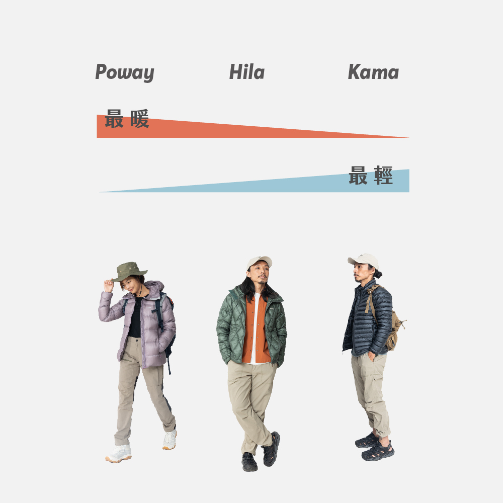 Kama 157g 最輕 < Hila 224g < Poway331g