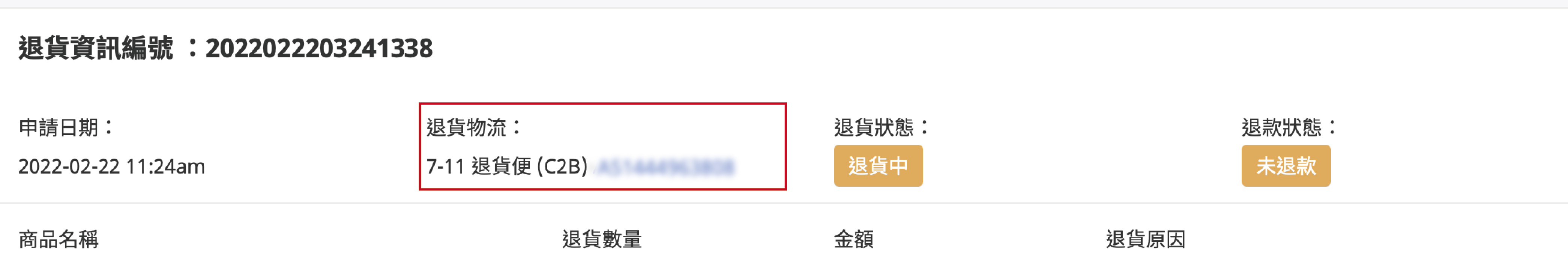 4. 當您成功完成退貨申請後,畫面上會顯示退貨資訊,且系統會寄送申請退貨確認信。