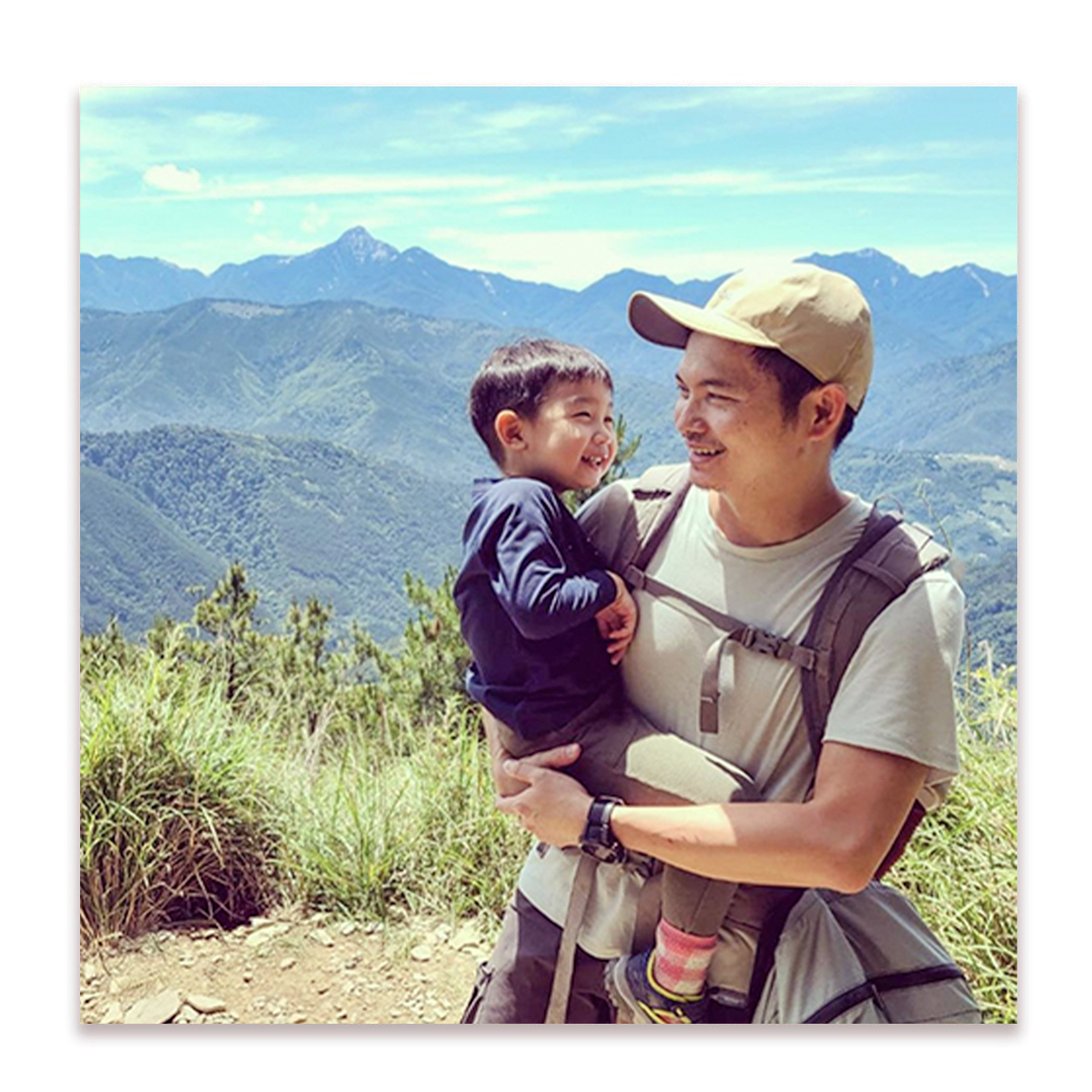「我走得好慢哦,你抱我好快哦!」岫岫不疾不徐地說,還抬頭呲呲地笑。 「坐轎子當然覺得快,而且我抱你還扭到腳⋯」我挖苦他。 雪山東峰雖是入門百岳,但依舊折磨耐性和心境,大人小孩都是。身上又多了一兩個的背包,暫時減輕孩子的負擔。 我搶幾步坐下喘息,他們馬上胡鬧攀在背後,我忍著背上的壓迫換得孩子的笑顏。夏天的雪山,只要陽光灑落處,溫度便直線上升,好在,背頸與背包間,隔著天絲親膚快乾上衣,體感依然舒適解熱。