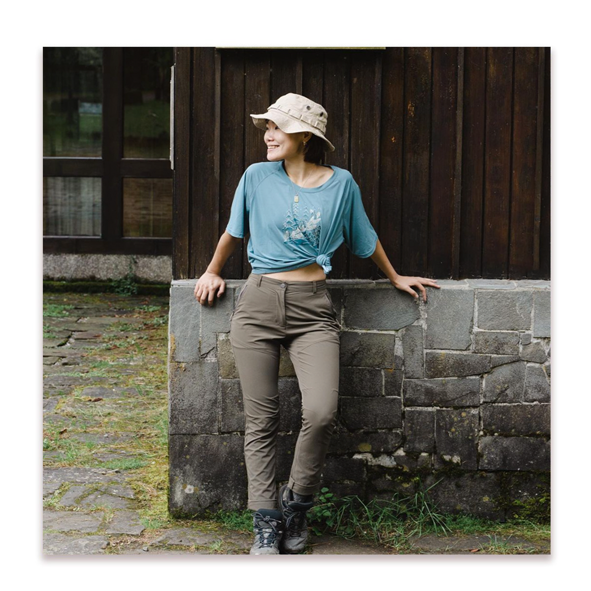 而且戶外材質不易皺這點真的很棒!對於目前已斷捨離掉衣櫃的我來說能直接捲收更省空間! 顏色調和不會像很多戶外服飾過於高彩度、休閒感過重,簡單搭建襯衫或外套也能輕鬆搞定上班穿著。剪裁設計上長度會蓋過髖骨,不習慣露出腰腹的女生或很有安全感。