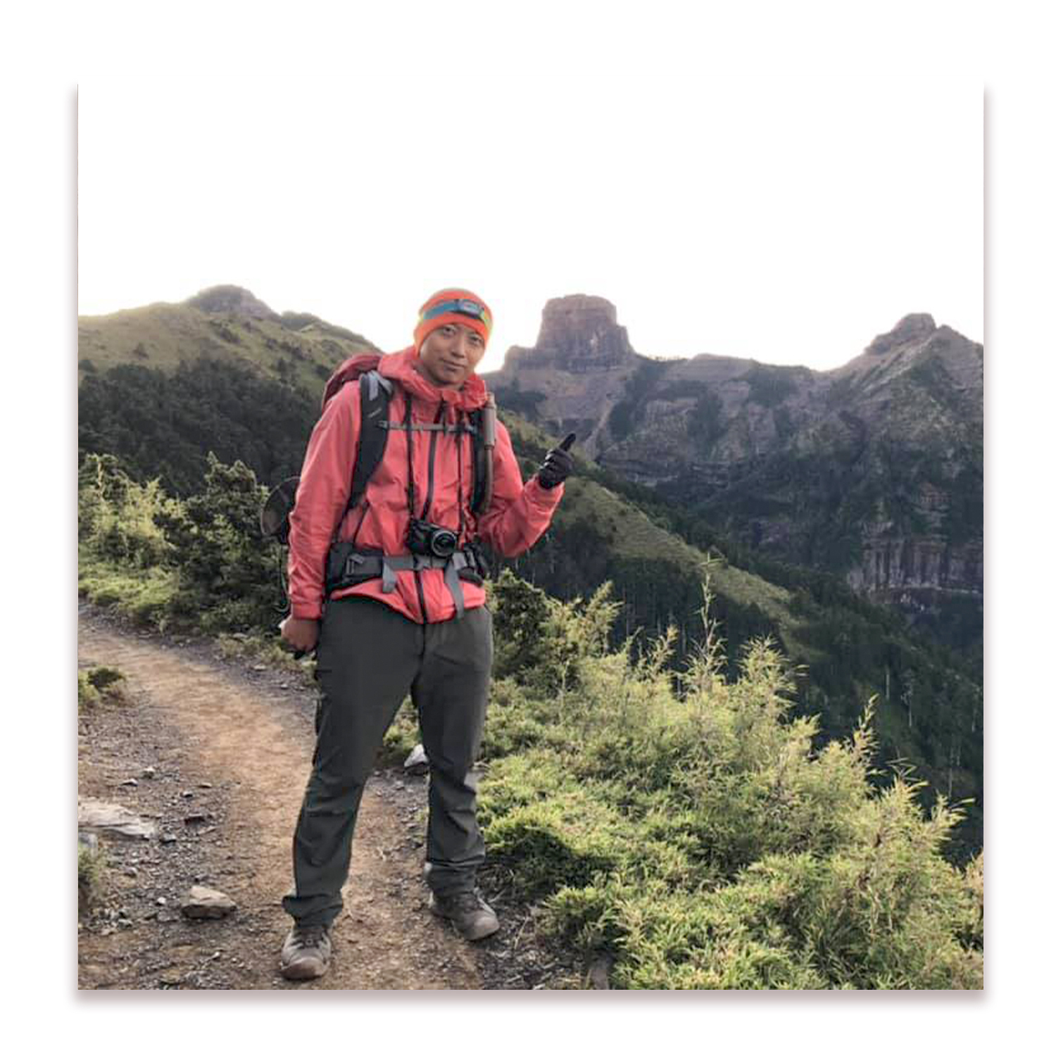 看到我的笑容,就知道外套奪好穿了✌🏼 合歡天空不作美,還好有外套的防潑水,才沒被山神的眼淚,潑的全身濕,但褲子是真的濕透了,希望出個超強雨褲吧!拜託了🙏