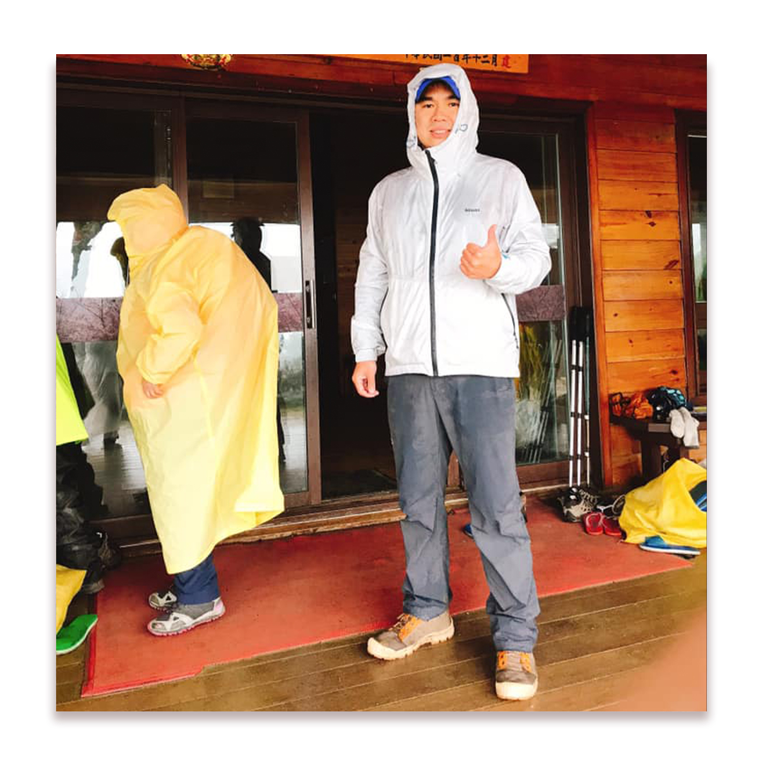 這次爬雪山,第一次穿kawas外套就遇到雷雨交加的天氣,一路上泥水聚流成河,好在我們堅忍不拔,在暴雨閃電加上又濕又冷的狀態下,終於到了三六九山莊…