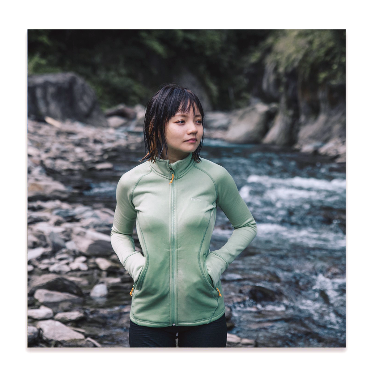 另外相較於一般半門襟的P/S保暖衣,外套的設計可以讓行徑間的散熱更彈性。而最棒的設計就是延伸袖口,雖然只是掌心的覆蓋,但和完全裸露的手掌相比,保暖度還是有明顯的差異,不管是否習慣戴手套,都很適用延伸袖口,可以更享受山裡的濕冷。