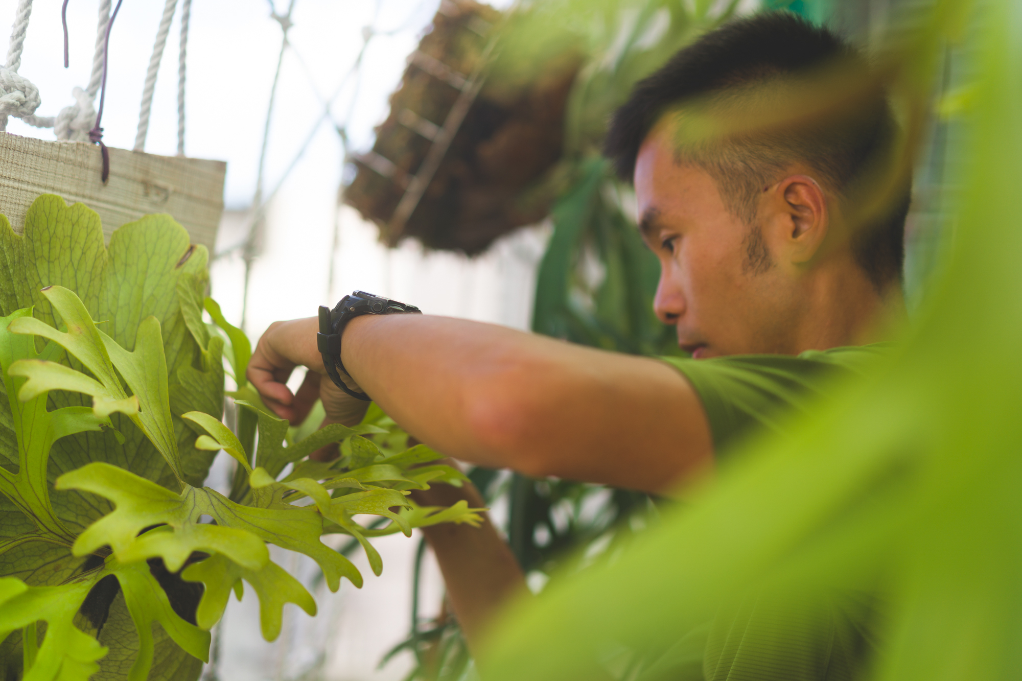 嚮導立人回到山下後,反而喜歡待在家裡,他的房間除了戶外裝備外,擺了許多登山及文學書籍以及鹿角蕨。