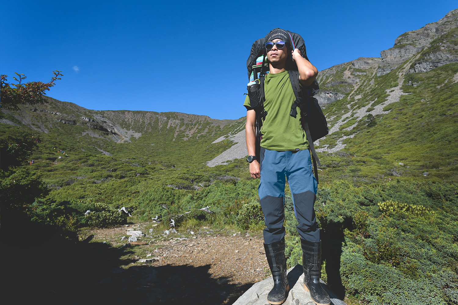 立人穿著 Waor 耐磨多口袋登山長褲上山測試情境照 ( 攝影提供:寶島登山隊 )