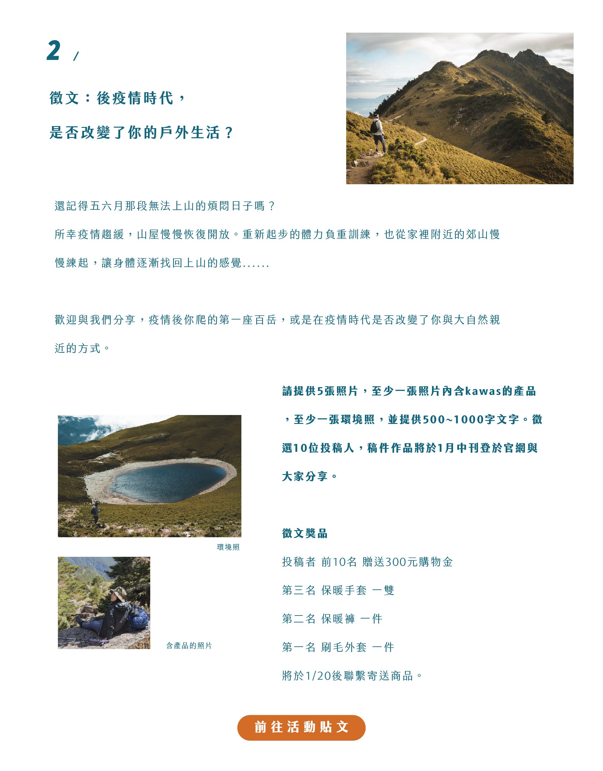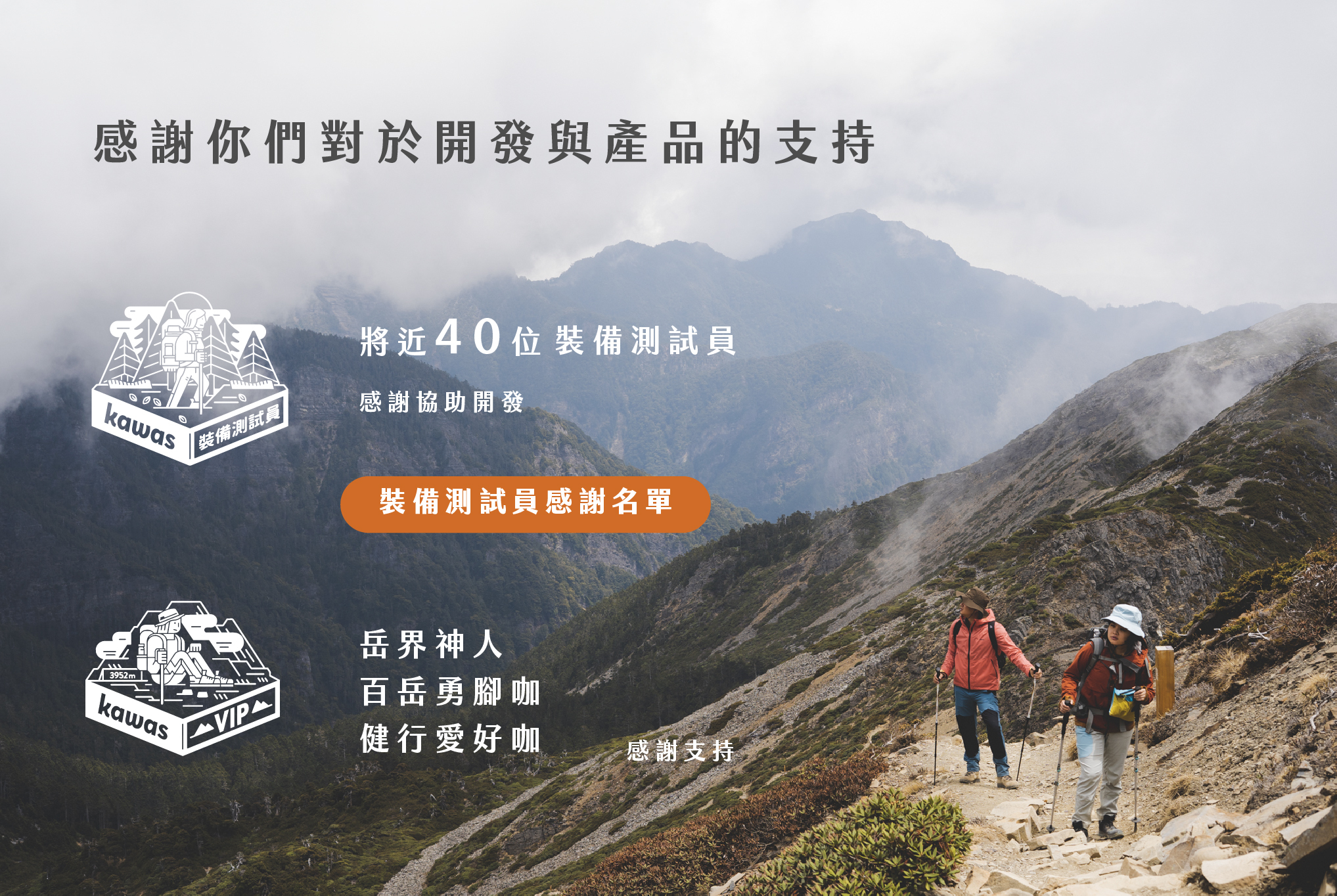 而年底的此時,感謝支持的山友,測試員,嚮導,學者們,以及願意支持台灣本土戶外品牌的消費者,讓kawas能在停止山岳活動的淡季,持續維持開發經營能量,製作出更多的戶外裝備。