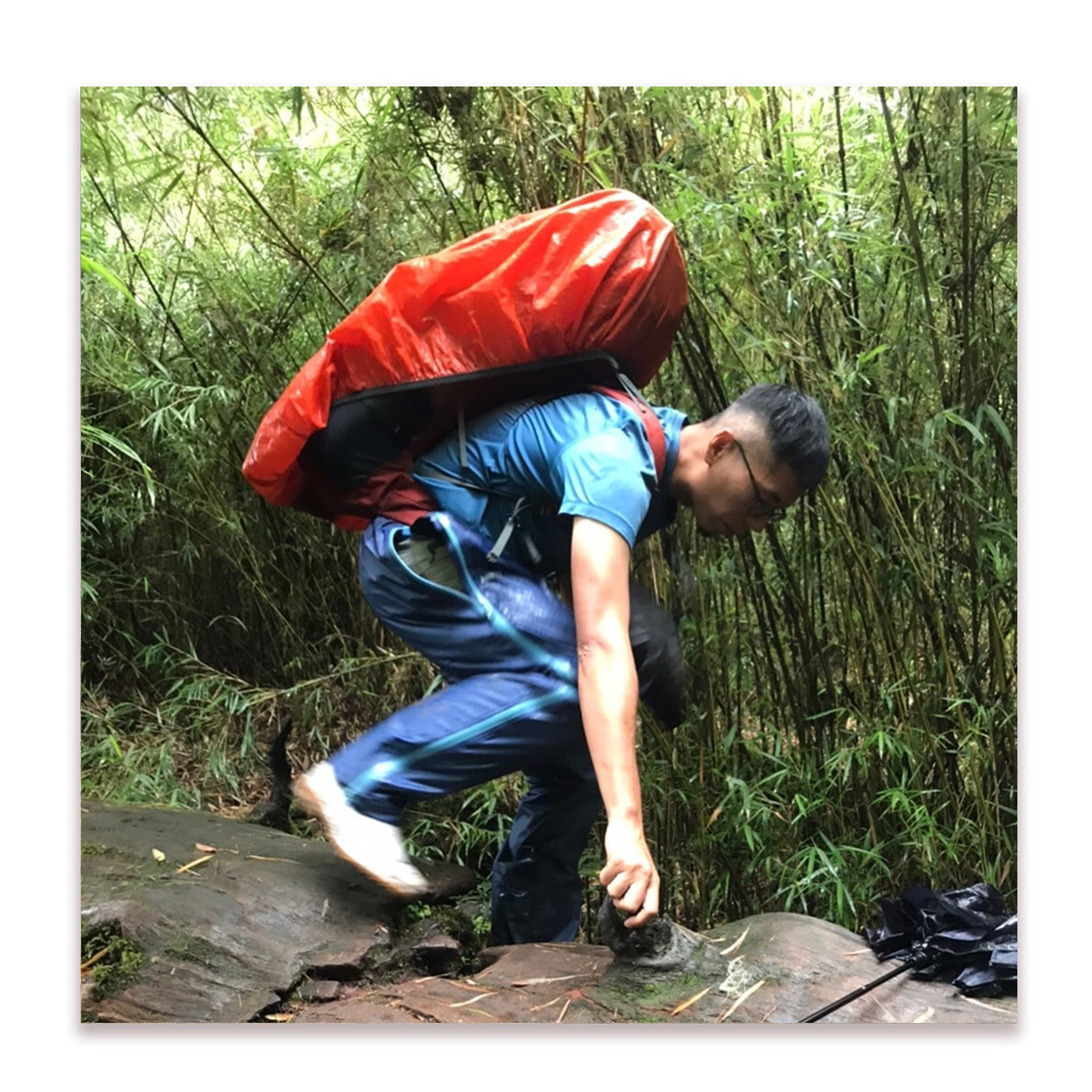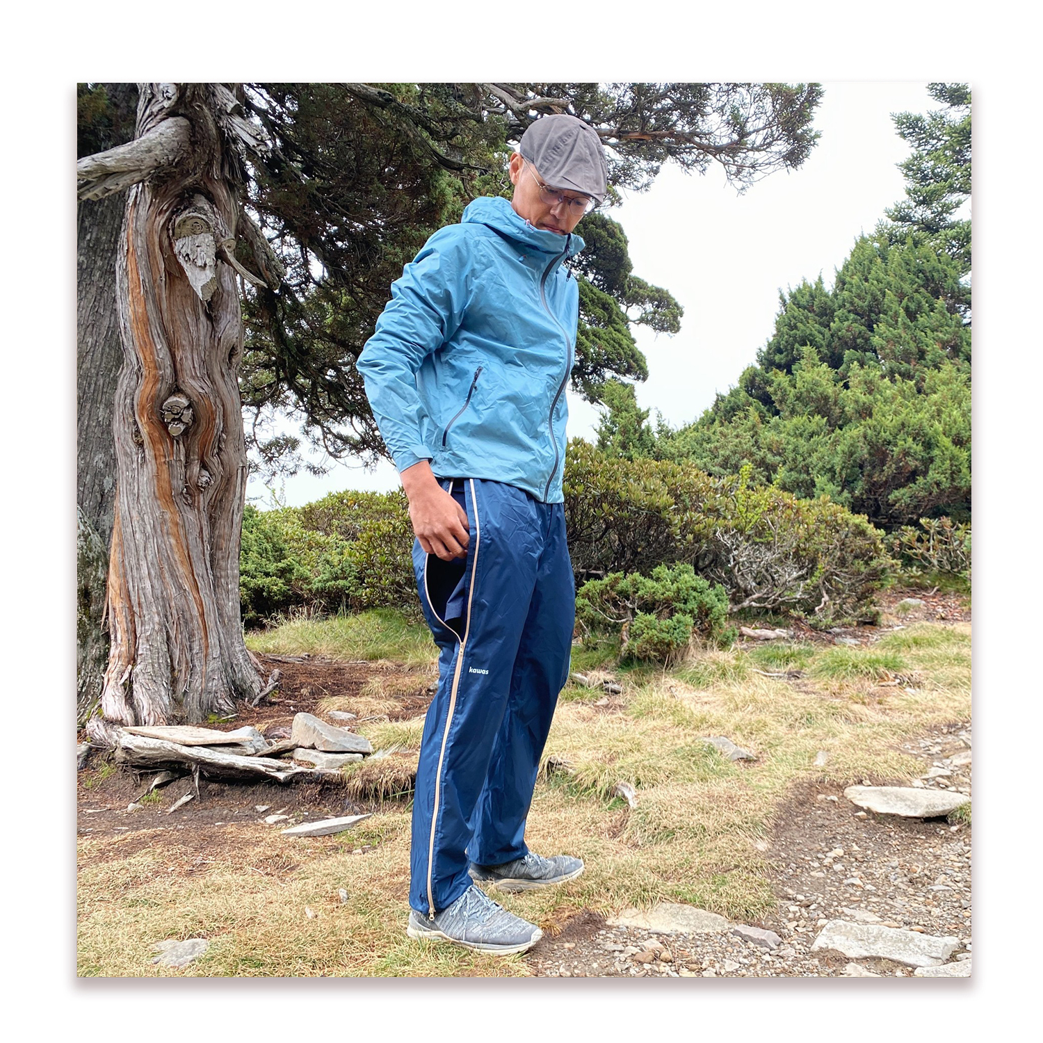 上半年為了桃山神木去探勘很多次,在潮濕的箭竹林裡又鑽又滾的時候,kawas雪中送炭的提供了這件雨褲給我。結果這次我們去爬桃山神木做測量的時候,遇到巴威颱風來攪局,真的是淋到嫑嫑的,還好有新雨褲的加持。