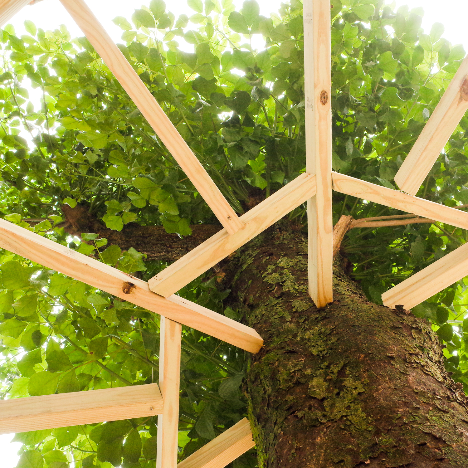 離開南庄國小前,我們再去探訪了去年搭建的樹屋。 校長說『你看得出來這部分的木頭顏色有點不太一樣嗎?』 經過一年的時間,有些樹材都已被蟲蛀壞了,最近才重新施工換上了新木材。