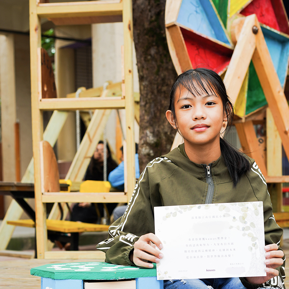 今年我們將一部分販售產品的收入,換成獎學金提供給南庄國小木工社的孩子。