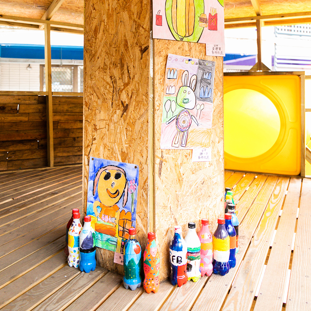 現在的樹屋變成小學生藝術作品展示的地方。這裡布展方式也是讓小朋友自由發想,自己動手做,老師只是給予建議指導。這種不受限的教學方式,讓小孩可以發揮自己的創意!