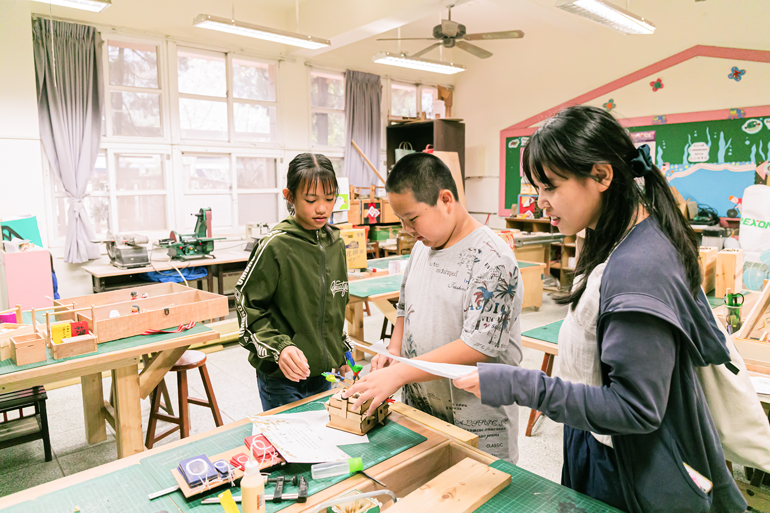 在木工課的孩子們,看到教室裡有壞掉的課桌椅會主動幫老師維修。這樣的主動積極,相信往後遇到的問題也能以這樣的心態去解決。