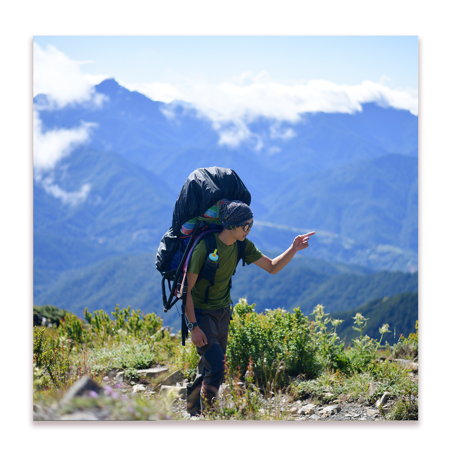 第二日清晨,前往小霸尖山攻頂。路經霸基與幾段攀岩拉繩路段,waor可以讓我放心依靠岩壁上去跨步上攀或是拉繩,布料與岩石摩擦時也沒有不適的異物感,雙層布料確實有差異。