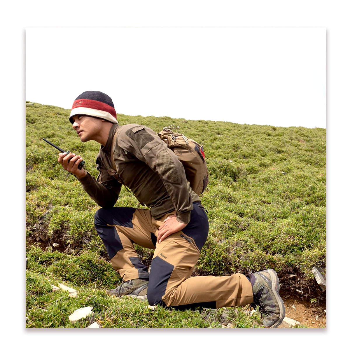Waor登山長褲使用耐磨及四向彈性的布料,無論是過落差比較大的地形,或是較尖銳的岩石和灌木叢裏,也能順利通過不卡卡,且在滑倒幾次褲子還是一樣無破損,並且在盤根錯節的下坡地形也可以大膽的蹲或坐的一路下坡。
