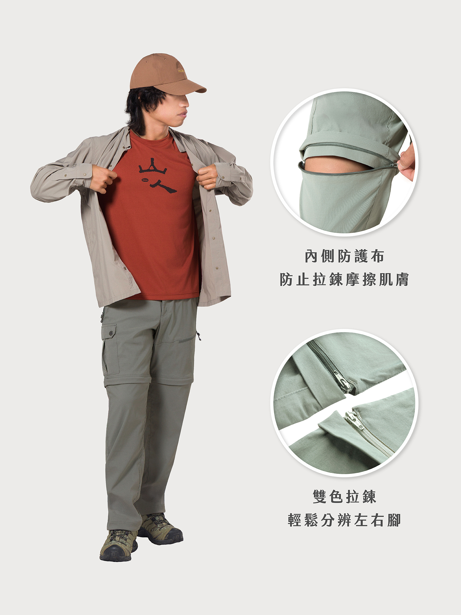 · 兩截式登山長褲,可隨需求隨時變成短褲。