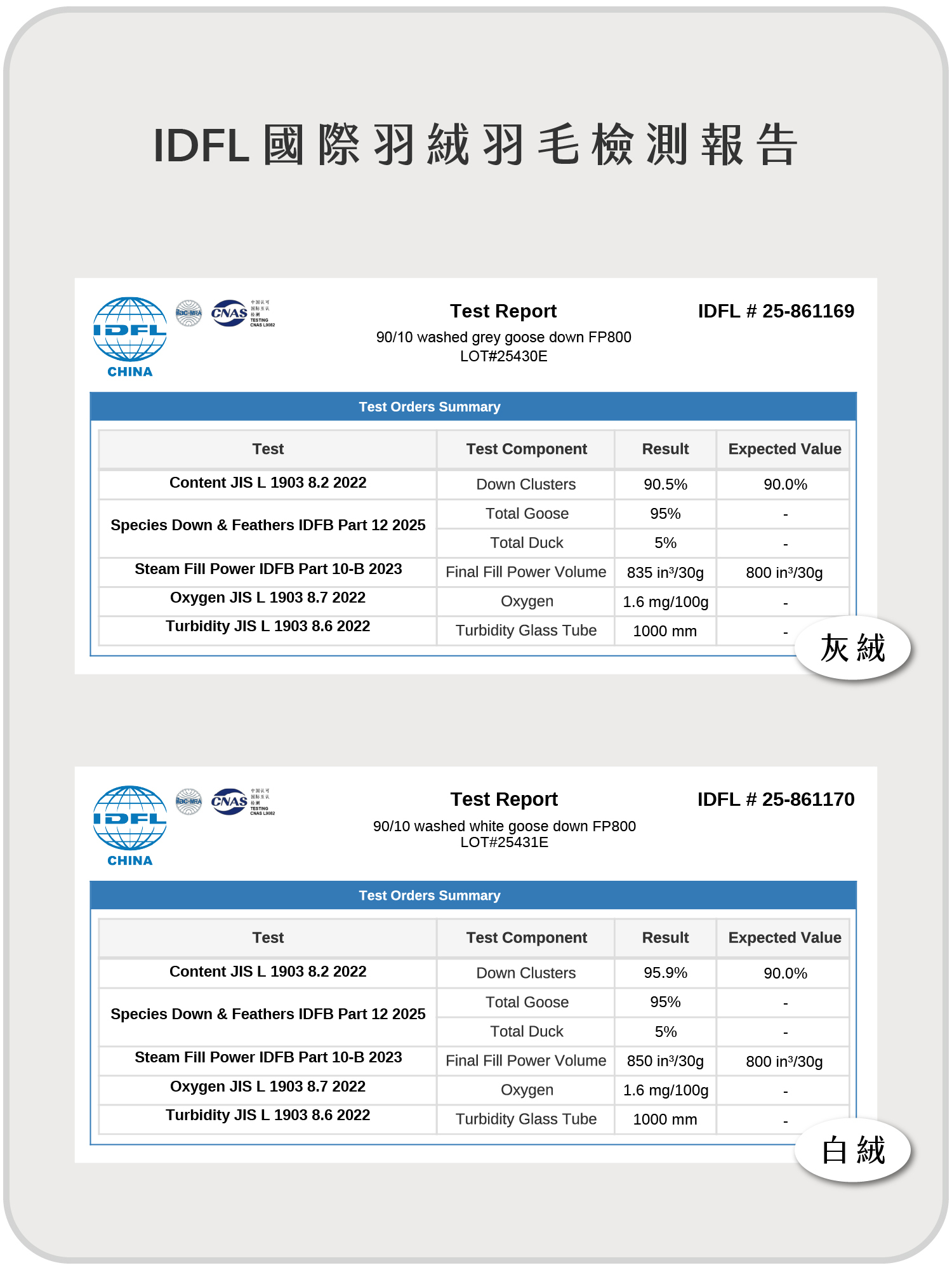 填充物 有分白鵝絨和灰鵝絨