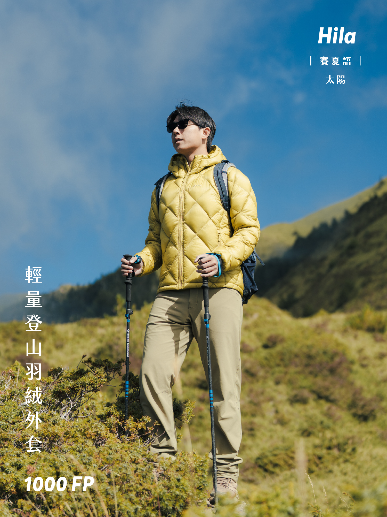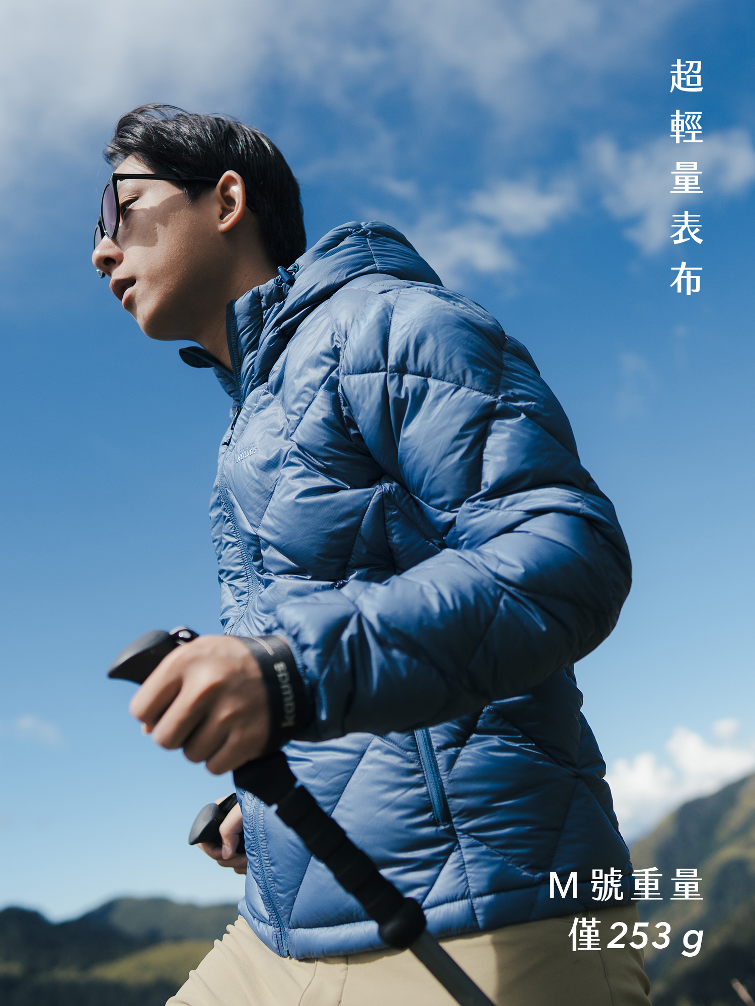 【 Hila 1000FP 輕量登山羽絨外套 】輕量入門款、設計造型填充復古菱形格、輕量入門款、C0防潑水,CLO高達2.1,測試員於接近0度的山屋休息時實測也很保暖。非常合適長天數健行攜帶的輕量保暖外套。