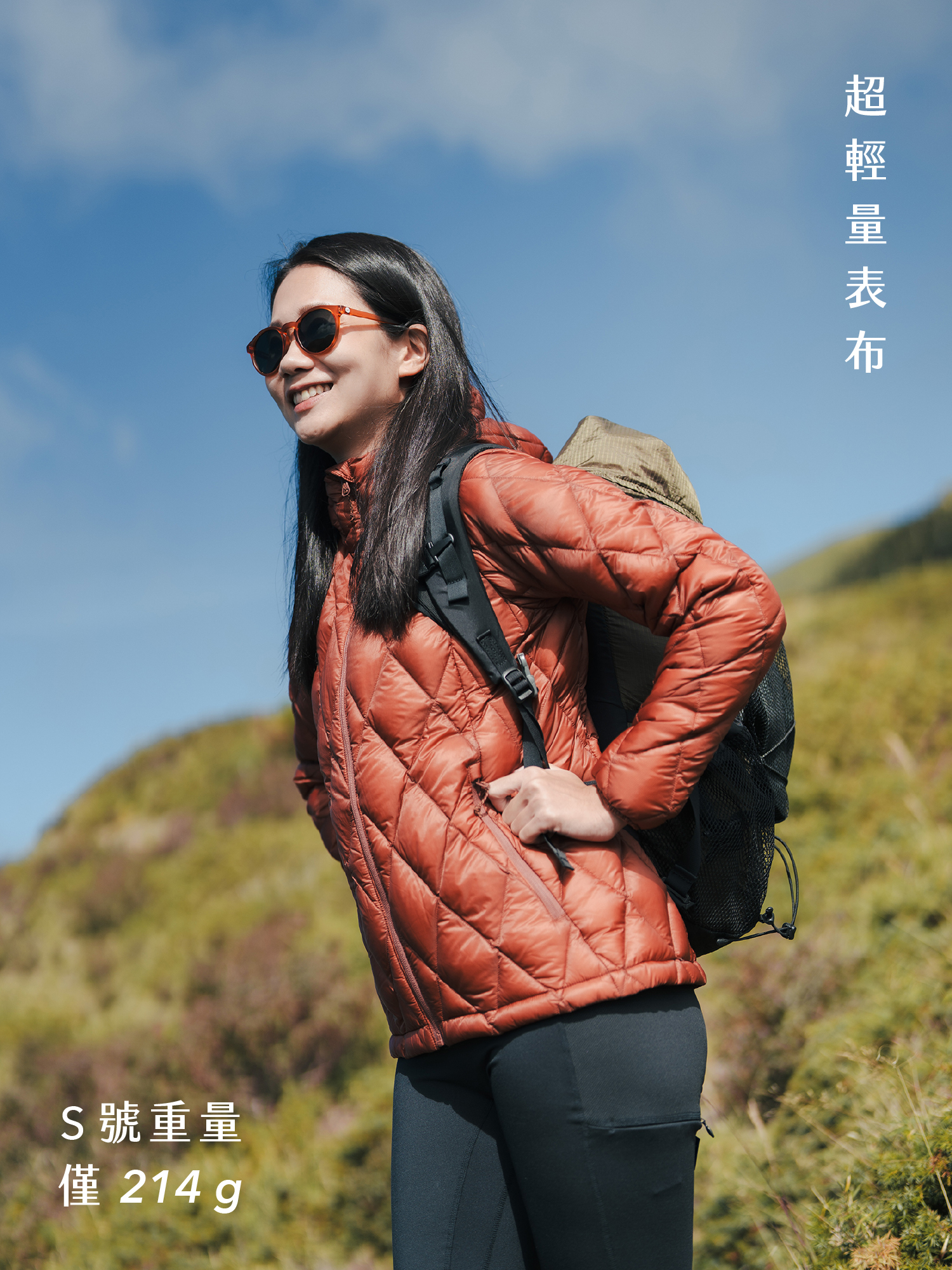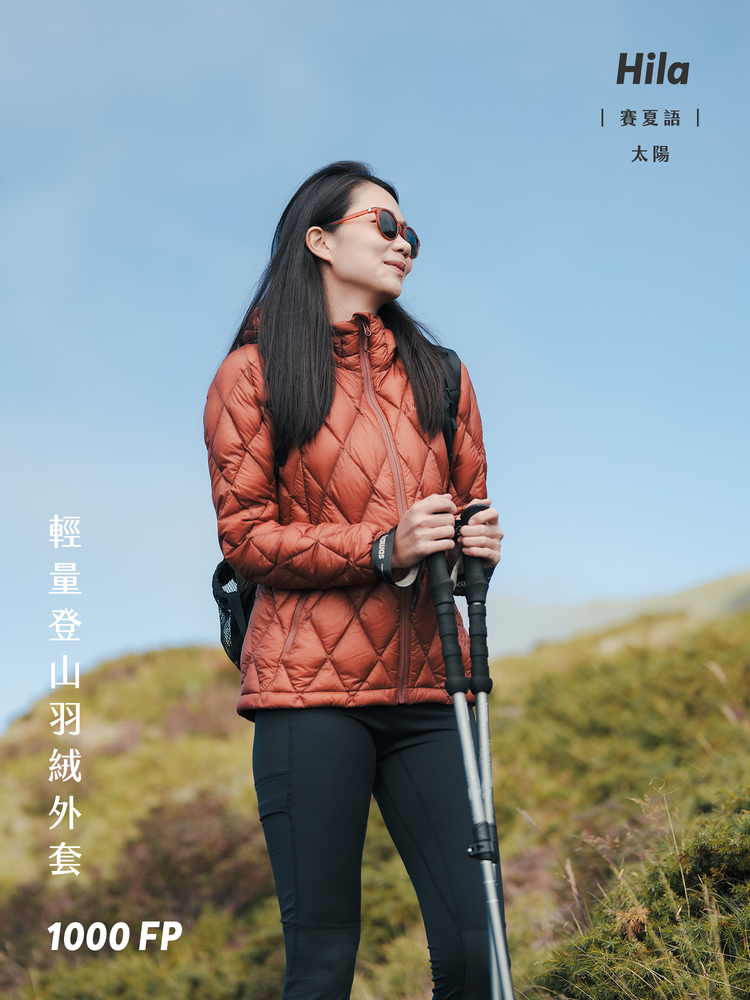 【 Hila 1000FP 輕量登山羽絨外套 】輕量入門款、設計造型填充復古菱形格、輕量入門款、C0防潑水,CLO高達2.1,測試員於接近0度的山屋休息時實測也很保暖。非常合適長天數健行攜帶的輕量保暖外套。