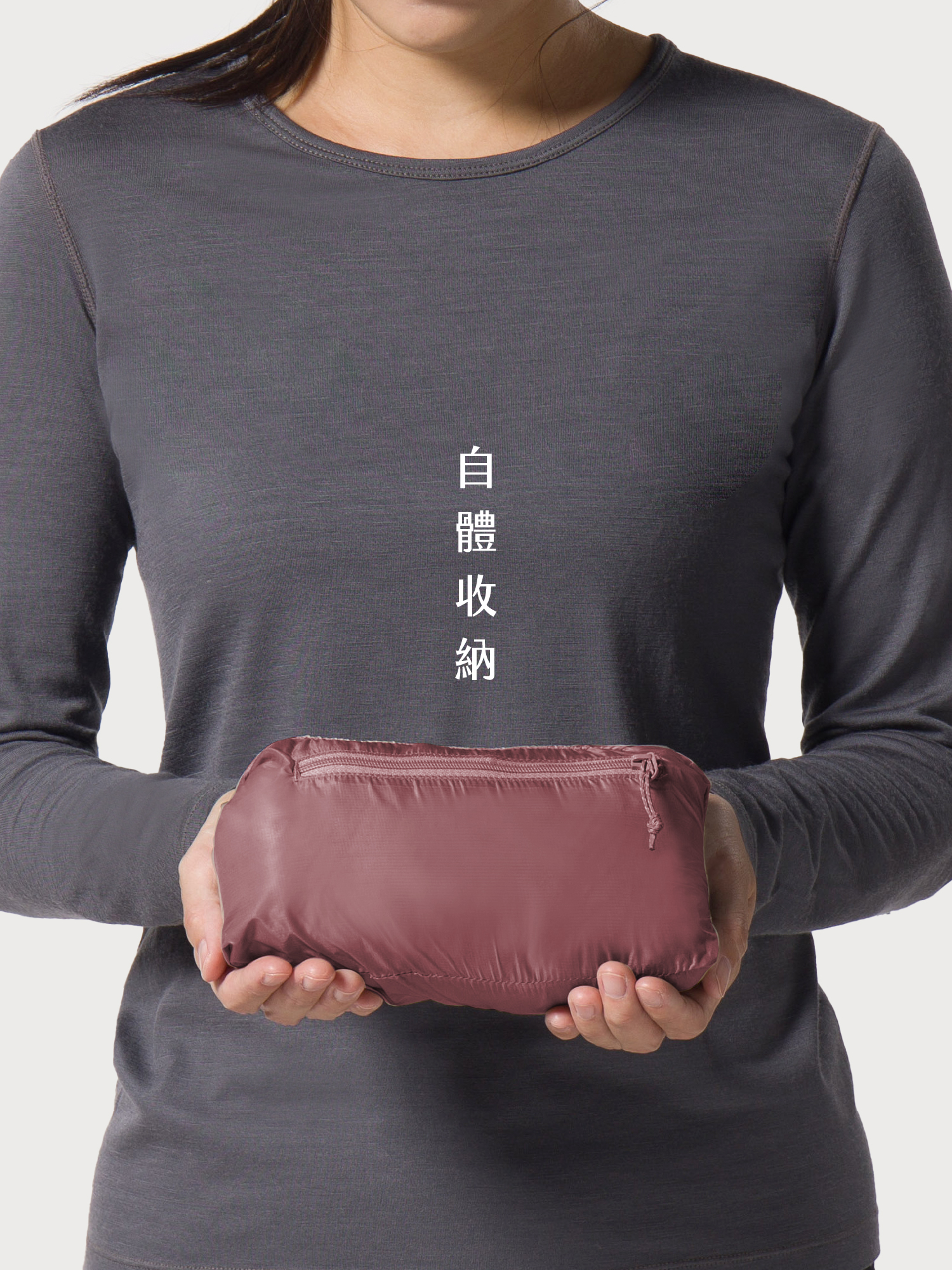 口袋反轉後,可以將羽絨外套自體收納,不再有收納袋遺失的困擾。