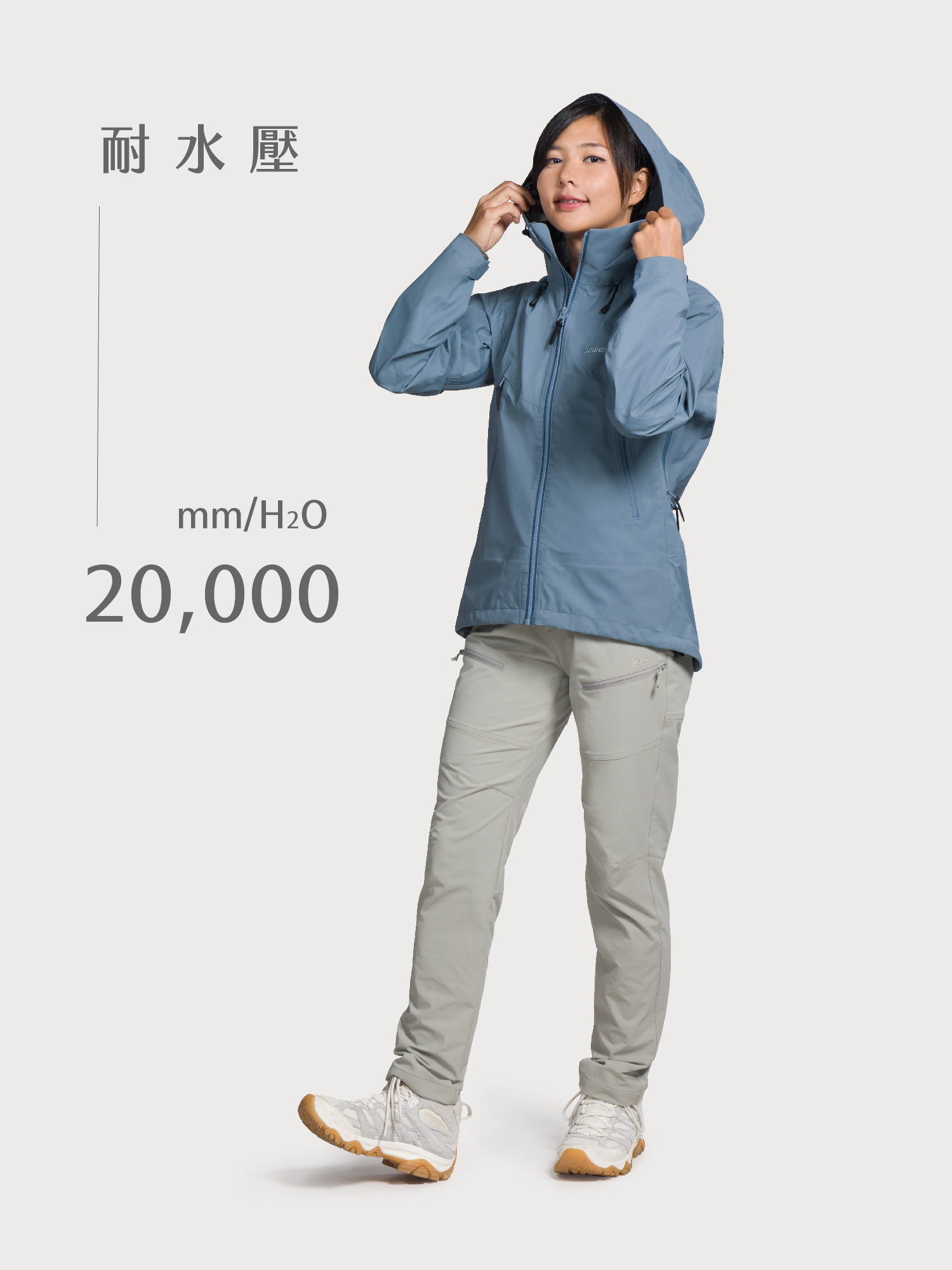 · 耐水壓值高達20,000mm/H2O,足夠抵抗百岳上濕冷冬雨。