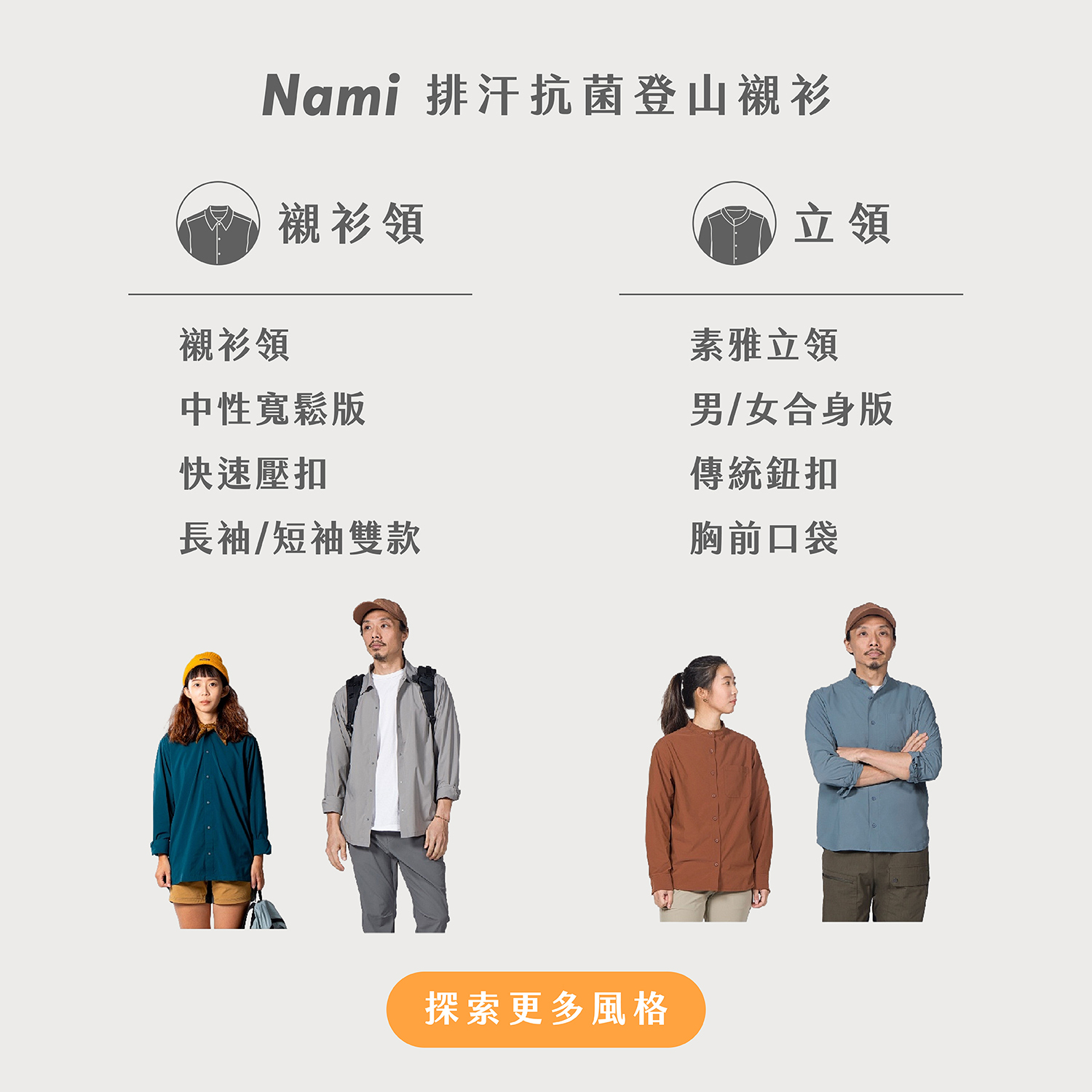 在微涼的春秋兩季登山,將襯衫當作薄外套,成為一個隨心所欲的靈魂。
