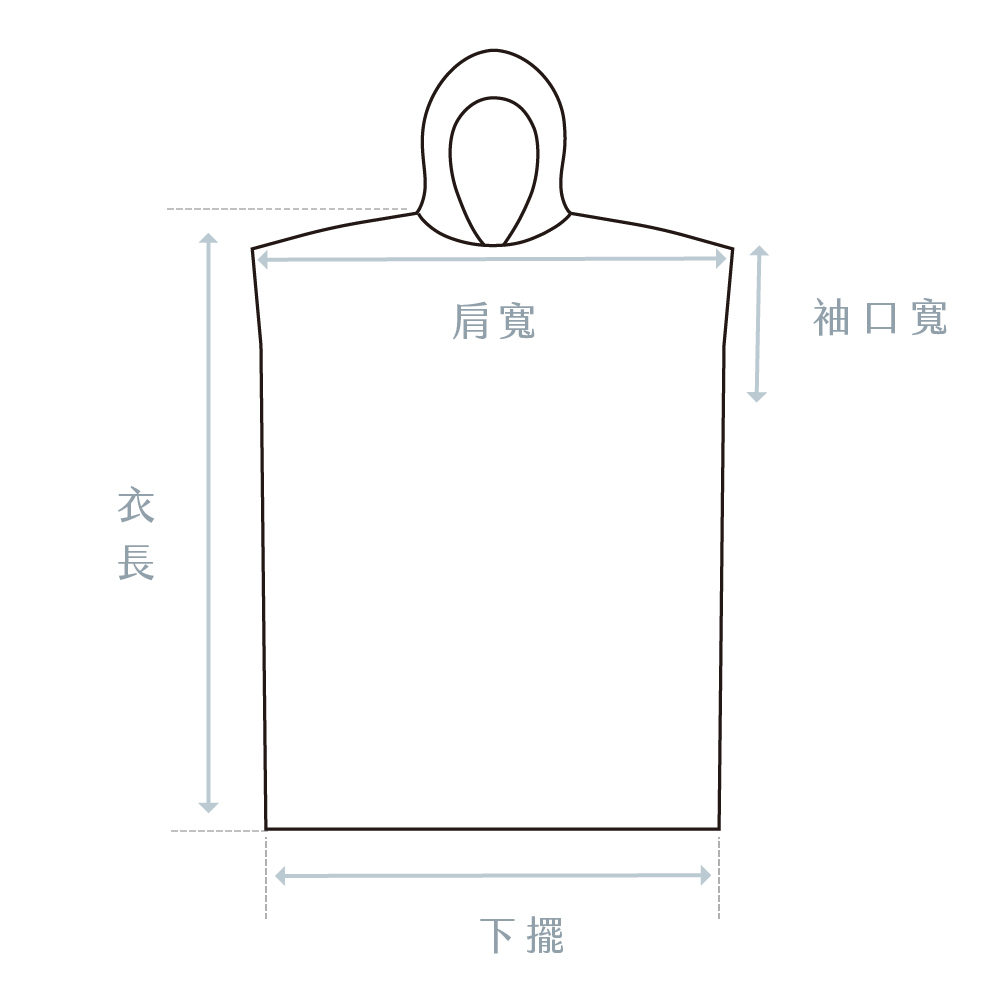 衣長 110 cm 肩寬 92 cm 袖口寬 31cm 下擺 92cm
