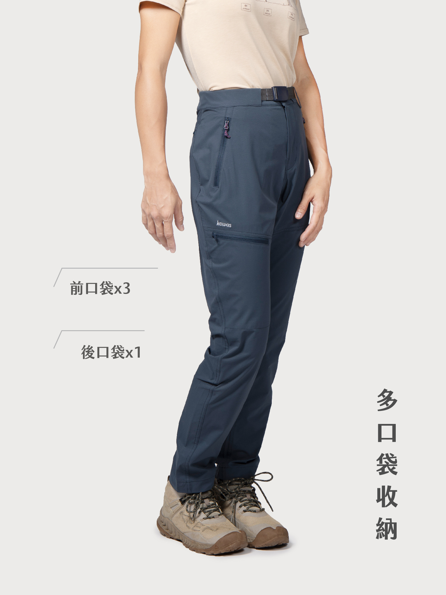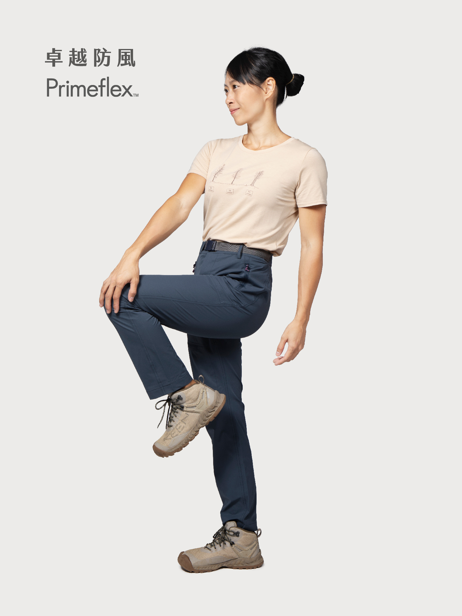 十分輕量的布料,布感很薄,體感不悶熱。大口袋設計,對於戶外寫生非常方便,一個口袋放小相機記錄植物樣態、另一個口袋放筆和橡皮擦,不常用的手機則可以放在大腿貼袋。前陣子為了測試流汗會不會悶熱黏膚,穿著 Pospos 軟殼長褲去跑步,高強度的爆汗,仍不黏膚,是 Primeflex 的布料的優勢。