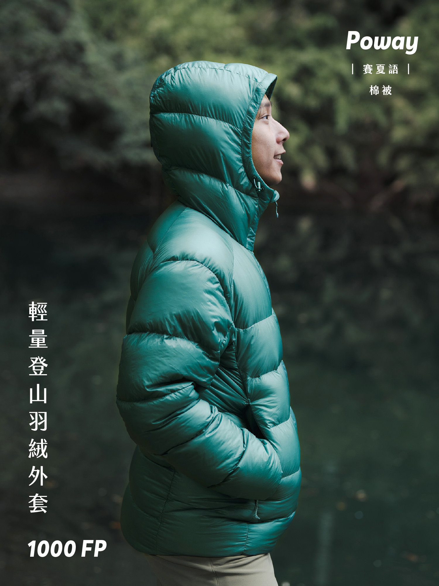 【 Poway 1000FP 輕量登山羽絨外套 】休閒時尚感、設計造型填充格寬大感、C0防潑水、填充最多,CLO高達2.76,消費者回饋於接近負4度的山屋休息時也很保暖。出國海外賞雪超推薦使用。